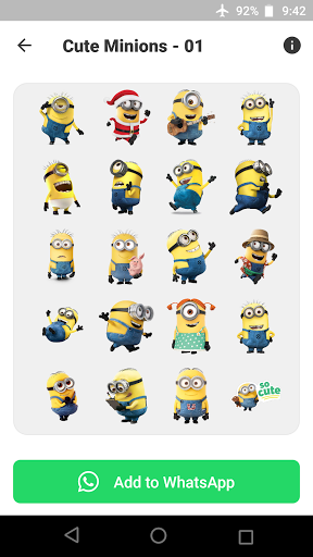 คุณจะได้รับการแสดงออกหลายประเภทจากภาพเคลื่อนไหว minions ที่น่ารักที่คุณสามารถรับได้ในคลิกเดียวโชคดี แอปพลิเคชั่นนี้ใช้งานง่ายมากและคุณสามารถใช้สติกเกอร์ในแอปพลิเคชันนี้ได้เพียงคลิกเดียว. อย่าพลาดสติกเกอร์😊น่ารักนี้รับประกันว่าคุณจะไม่เสียใจ