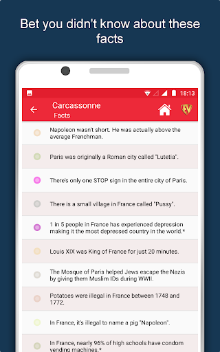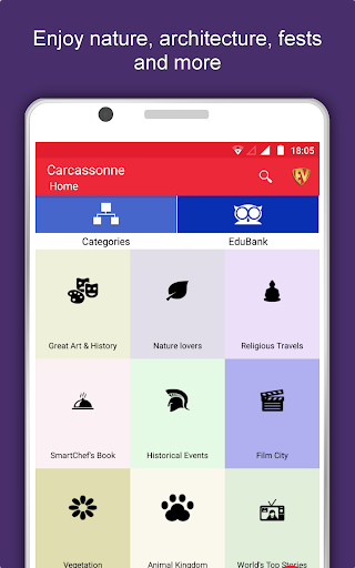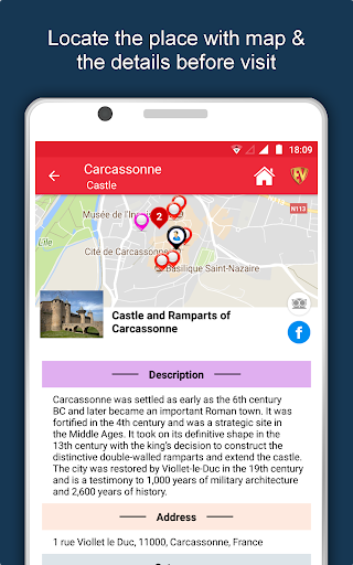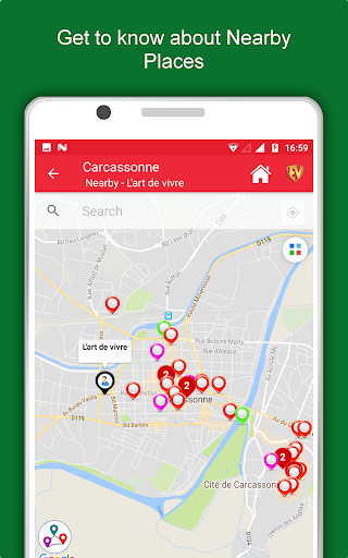 คุณสมบัติและรูปภาพทั้งหมดในคู่มือ Carcassonne City มีให้บริการแบบออฟทริน แอปท่องเที่ยว Carcassonne นี้มีไว้สำหรับ Globetrotters ที่ไปโดยอ้าง "การเดินทางทั้งหมดมีจุดหมายปลายทางที่เป็นความลับที่นักเดินทางไม่ทราบ" ด้วยไกด์นำเที่ยว Carcassonne เปิดตัวสถานที่ที่คลุมเครือเชื่อมต่อกับคนมากมายเข้าใจวัฒนธรรมศิลปะและประวัติศาสตร์พูดคุยกับชาวพื้นเมืองในภาษาของพวกเขาเพลิดเพลินกับอาหารที่แท้จริงและมีความสุขในงานเฉลิมฉลอง