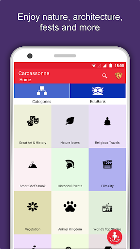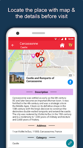 นอกเหนือจากนี้ Carcassonne Travel & Explore แนะนำคุณว่าทำไมเมื่อไหร่และวิธีการเยี่ยมชมสถานที่ต่าง ๆ ใน Carcassonne ด้วยตำแหน่งที่แม่นยำบนแผนที่รายละเอียด มีสองวิธีในการสำรวจแอพนี้ - มุมมองหมวดหมู่และมุมมองที่ชื่นชอบ edubank ตรึงจุดหมายปลายทางของคุณและรับเส้นทางบนแผนที่ ไม่เพียงแค่นี้คุณสามารถดูได้อย่างไรว่าสถานที่มีลักษณะอย่างไรกับถนนที่รวมอยู่ในแอพนี้ แอพนี้ยังมีคุณสมบัติในการให้คะแนนและเขียนรีวิว / ประสบการณ์เกี่ยวกับนิติบุคคลผ่านการเข้าสู่ระบบ ประสบการณ์การเดินทางและการจัดอันดับของคุณจะช่วยให้ชุมชนผู้ใช้