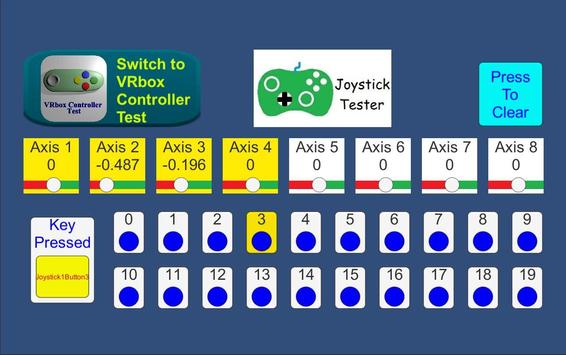 Joystick Tester(Joystick test, Game Controller test, Gamepad test, VRBox test) for detect Axis move and button press.