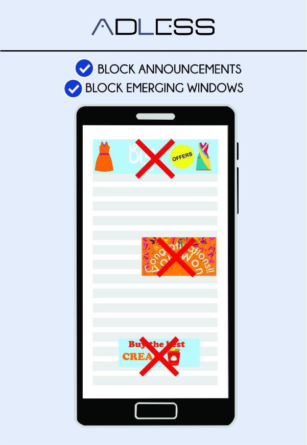 Adless Browser - Adblock for Android blocks all the ads on the websites that you surf, blocks the 99% pop ups and fraudulent ads. The first and most popular ad-block for Android. Yes, this is Adblock for your mobile device. Remove ad from your android once and for all.