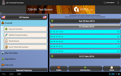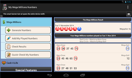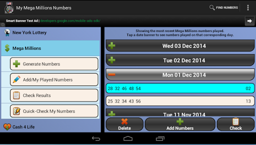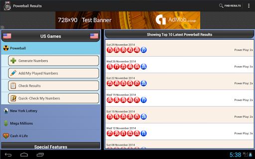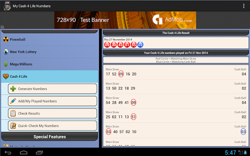 Powerball, New York Lotto, Mega Millions and Cash 4 Life results direct to your mobile. Easily get the top 10 latest results for a game or search for a result by a date.