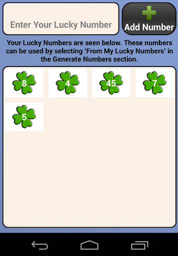 You can mix up some of your lucky numbers along with those generated at random or you can generate a line of numbers that contains all of your lucky numbers picked at random.