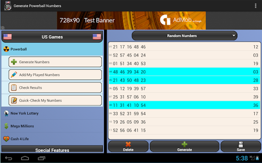 Can't decide on the numbers to play? Let Lottery Bot make some for you! Generates numbers for Powerball, New York Lotto, Mega Millions and Cash 4 Life.