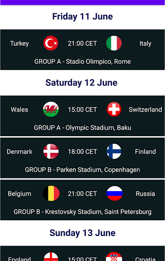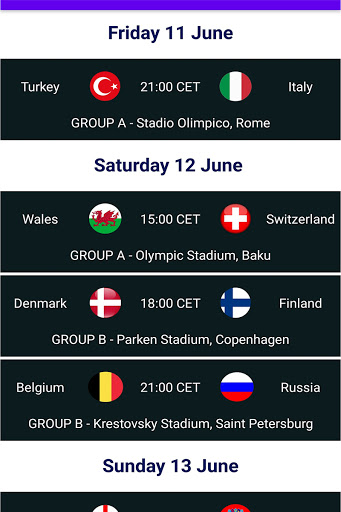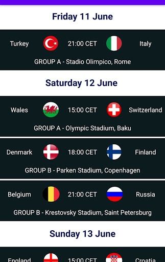 ยูฟ่ายูโร 2021 จะเกิดขึ้นตั้งแต่วันที่ 11 มิถุนายนถึง 11 กรกฎาคมของคุณสมบัติที่สำคัญของแอพนี้: