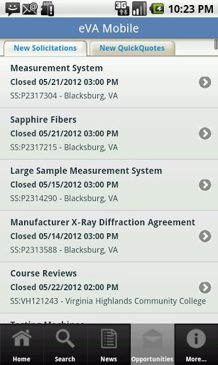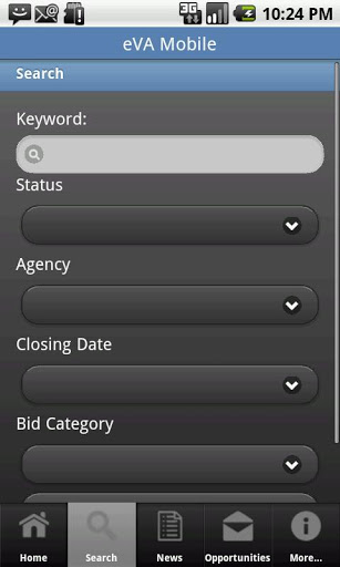 The official eVA Mobile app provides users real-time access to business opportunities with Commonwealth of Virginia state agencies, universities, colleges, local governments and other Virginia public bodies.