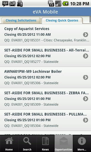 eVA Mobile provides fast access to all of these solicitations directly through your mobile device.