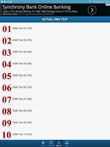 1) Tap on the "Real Test" button at the bottom of the app to write test similar to real test.