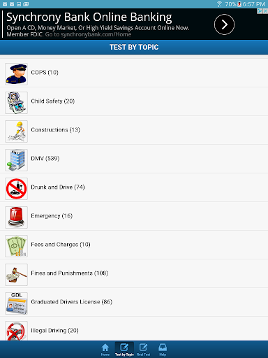 1) To write the test in different topics tap on the "Test by Topic" button at the bottom to app to write test in different category