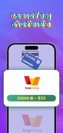 คุณสามารถผูกข้อมูลบัญชีของคุณเพื่อโอนเหรียญไปยังกระเป๋าเงิน TureMoney หรือบัญชีธนาคารของคุณได้ วงเงินถอนขั้นต่ำคือ ฿50