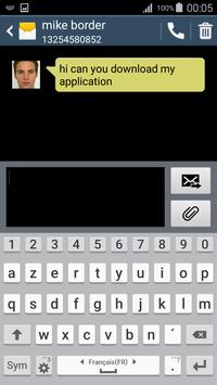 You can send fake sms or fake text messages to yourself, or can make a fake sms/ text messages from other person. The most professional fake text message and SMS/text application in Market! Get out the trouble, give yourself a fake-text message or sms (text messages)! This app Simulate a fake text message to rescue you from an awkward situation The fake text message sms is totally FREE. Want your friends think you are getting an important SMS and you still prefer them over celebrities Like President or any other celebrities? Fake SMS helps you to select a contact from your contact list or enter new contact. One can also select time for receive sms and set up multiple fake sms for different timings.