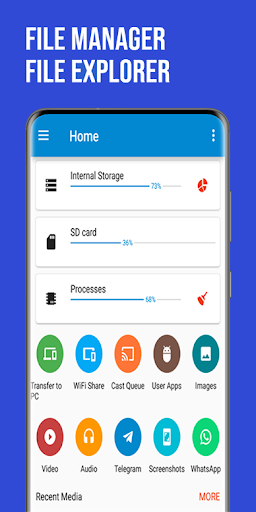 File Manager File Explorer can help you optimize your phone with powerful junk files cleaner, phone booster, app manager, CPU cooler.