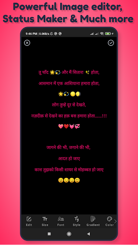 Lots of readymade templates to use for Status Maker and Shayari Editor. Support Night mode and Dark Mode.