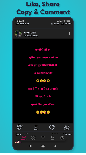 Very easy to use interface. You can share Shayari on WhatsApp or Facebook.