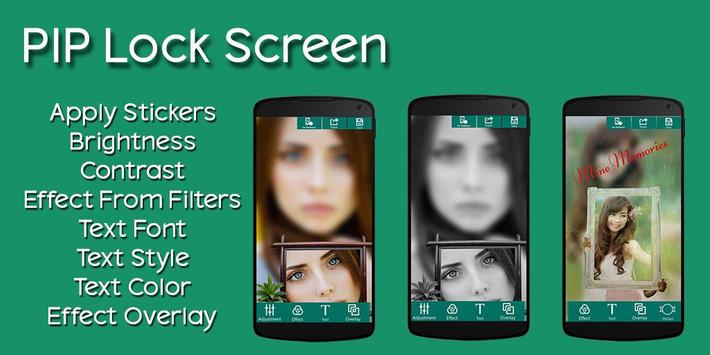 PIP Lock Screen is apply for making your Lock Screen more effective than others Lock Screen, in that you can make effective photo, decorate it, set time and date color with sound, apply filter on photo, overlay effect on photo and set text, change font size, text color and many more...