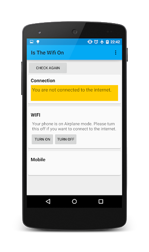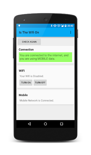 Fast and easy way to check internet connection and wifi. Check whether your phone is connected to the internet. Check whether your wifi is on or off. Check whether your mobile data is available.