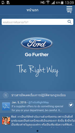 แอพพลิเคชั่น The Right Way สำหรับอุปกรณ์เคลื่อนที่ เป็นเครื่องมือที่มุ่งหวังให้พนักงานของฟอร์ด มอเตอร์ คัมปะนี และบริษัทคู่ค้า สามารถเข้าถึงข้อมูลที่จำเป็นเพื่อชี้แนะแนวทางการตัดสินใจอย่างมีจรรยาบรรณตามนโยบายของบริษัทได้อย่างรวดเร็ว