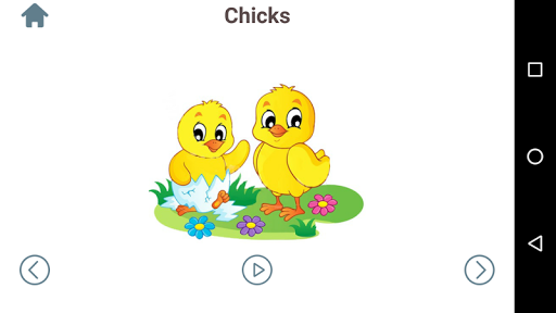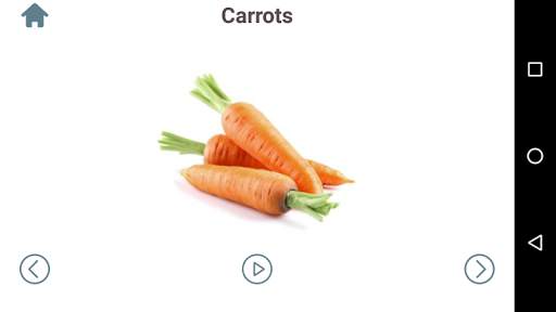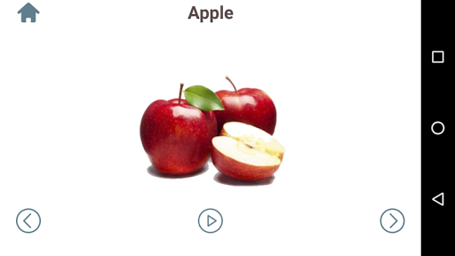แอปพลิเคชั่นนี้มีภาพที่มีเสียงจริงในหมวดหมู่เหล่านี้ - ผลไม้, ผัก, ยานพาหนะ, สัตว์, ตัวเลข.