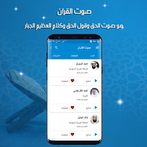 เสียงของเสียงอัลกุรอานได้รับการออกแบบ ในภาษาอาหรับและนำเสียงของอัลกุรอานและเป็นภาษาอังกฤษภายใต้ชื่อของอัลกุรอานเพื่อให้ผู้ใช้อาหรับและต่างประเทศสามารถใช้แอปพลิเคชันเสียงหรืออัลกุรอานได้อย่างง่ายดายและง่ายดาย แอปพลิเคชันของเสียงของอัลกุรอานหรืออัลกุรอานเสียงสามการพิมพ์หลัก: 1 - แท็บอ่าน: และค้นหาผู้อ่านและครอบครัวของพวกเขาเช่น Ajmi, Saad Al-Ghamdi, al-shuraim, al-sudais, al-sudais และ khaled Al-Jalil และผู้อ่านอาวุโสมากกว่า 100 คนสามารถใช้เสียงของการค้นหาอัลกุรอานและเรียกดู 2 - รายการโปรด: มันเป็นรายการในเสียงของเสียงหรือเสียงอัลกุรอานที่ช่วยให้ผู้ใช้สามารถเพิ่มเครื่องอ่านที่เฉพาะเจาะจงและ แสดงถึงผู้อ่านที่คุณชื่นชอบหรือที่ต้องการเสียงอัลกุรอานหรืออัลกุรอานมีไฟล์ทั้งหมดที่ผู้ใช้ดาวน์โหลดจากรั้วและสามารถเรียกใช้จากภายในแอปพลิเคชันและสามารถเรียกใช้ไฟล์อัลกุรอานจากภายนอกแอปพลิเคชันเสียงของอัลกุรอานหรืออัลกุรอาน . เสียงของอัลกุรอานเป็นส่วนต่อประสานผู้ใช้ที่น่าสนใจและใช้งานง่ายและอัลกุรอานจะทำงานสำหรับผู้อ่านทุกคนที่มีคุณภาพเสียงสูงและความเร็วสูง