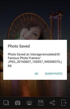 Create beautiful and lovely pictures with multiple frames. Send the photo to your friends and family from within the application through email, Facebook, Whatsapp, Twitter, Picasa, Skype, Instagram, etc. Using this app you can make photos more beautiful by decorating them with fantastic free Famous Photo Frames. You can also share the link of this app with your friends.