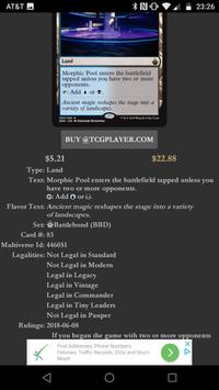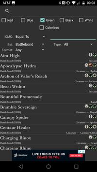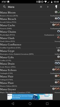 Features an Advanced search mode that lets you search by name, color, mana cost, set, format, and type
