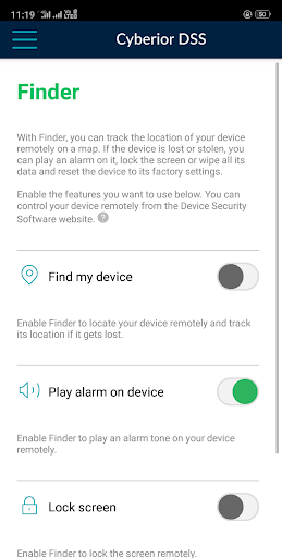 คำอธิบายของ Cyberior Device Security Software