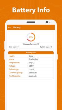 – Battery: Health, current level, power source, current capacity, total capacity, temperature, voltage.
