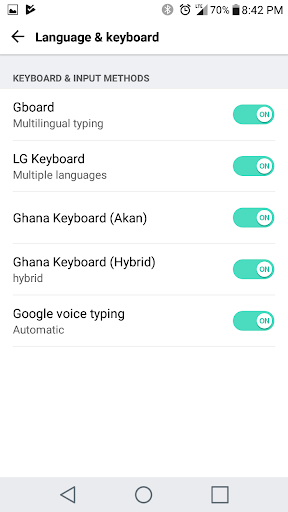 The custom Ghana Akan Keyboard is pure Akan Keyboard with the 22 Twi Alphabet. Download and install. After instillation go to systems setting to enable the keyboard. You can now type your favorite Akan Language.