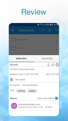 - คุณสามารถเรียกดูไฟล์และโฟลเดอร์ได้ - คุณสามารถคลิกที่ไฟล์เพื่อดูไฟล์โดยใช้แอปพลิเคชัน Android. ฟรี - คุณสามารถทำเครื่องหมายไฟล์เป็นออฟไลน์สำหรับการเข้าถึงออฟไลน์ฟรี - คุณสามารถแชร์ไฟล์กับคนอื่น