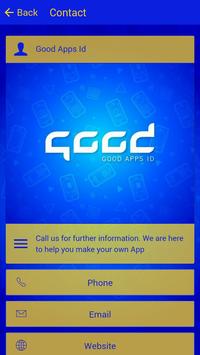 Good Apps Id is a DIY App Builder support App, easy to use and fun to customize your own unique App. Make your mobile App really yours, different with others. Your App can be really fun with music, pictures of your social and even videos, interact among others through this App. Have fun creating your App with Good Apps Id.