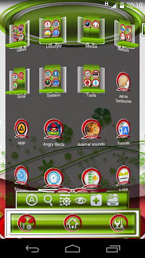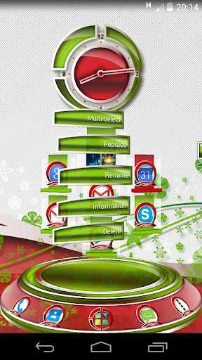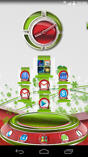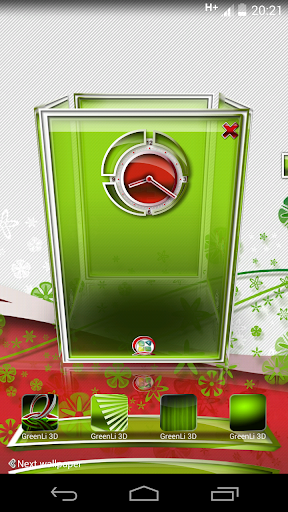 Greenli 3D - ธีมสำหรับ "ตัวเรียกใช้งานถัดไป" ในโหมด 2D และ 3D ตกแต่งด้วยสีแดงเขียวและรวมถึง: 5 วอลล์เปเปอร์ HD ที่ 5 วิดเจ็ตวิดเจ็ต, ไอคอนฐาน 3D และ 2D ใหม่ 3D