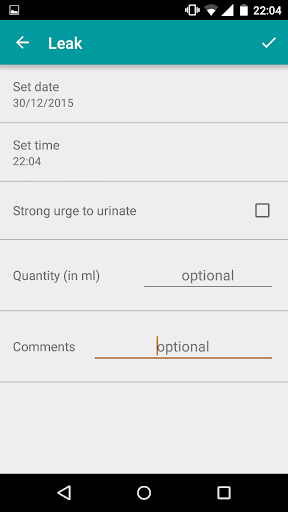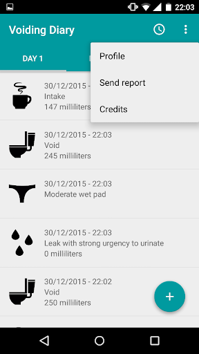 ด้วยไดอารี่นี้คุณจะสามารถบันทึกการบริโภคของเหลวของเหลวทุกวันช่องว่างการรั่วไหลของปัสสาวะและการเปลี่ยนแปลงแผ่นเป็นเวลาสามวันหลังจากเสร็จสิ้นการบันทึกเป็นเวลาสามวันคุณสามารถส่งรายงานไปยังแพทย์ของคุณผ่านทางอีเมล