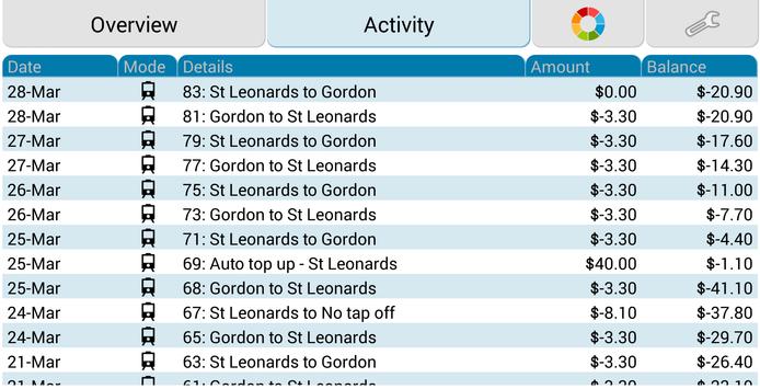 Opal Mobile is a fast, convenient, free way for Sydney public transport (Train, Bus and Ferry) users to see their balance, statistics and activity.