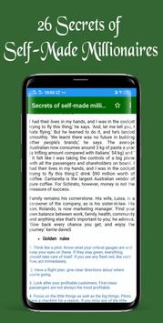 That's why we made an app about 26 secrets of self-made millionaires from a self-made millionaire book written by a great author. Be a self made millionaire you have to know a lot about how to be a self-made millionaire. If you see self made millionaires list in the globe, you will see a lot of self made millionaire who is women, self made millionaires under 30 or self made millionaires after 50 and eventually they become a billionaire to trillionaires. Their self made millionaire stories are different from others. Their thinking strategies are different from others. In the world, you can find a good number self made millionaire percentage and their dedication is completely different.