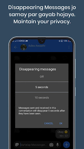 Messenger นี้ให้ความปลอดภัยที่จำเป็นสำหรับวันนี้ไม่มีลู่และสภาพแวดล้อมส่วนตัวอย่างเต็มที่ความเป็นส่วนตัวของชาวอินเดียเป็นสิ่งสำคัญและนั่นคือเหตุผลที่ไม่มีใครเห็นสิ่งที่คุณแชทยกเว้นบุคคลที่คุณแชทด้วย