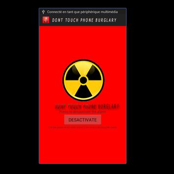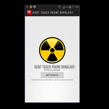 this Dont Touch Phone Burglary keeps your phone save from a curious people. When you activate the alarm, no one could touch your phone, because the alarm will be triggered if any one try to take the phone.