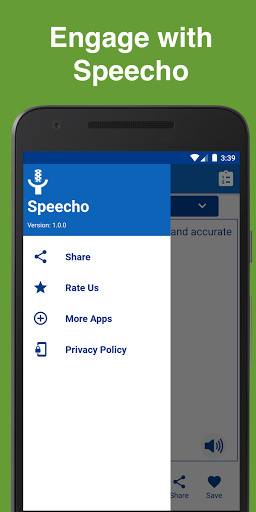 Speecho - แอป Speech to Text Converter มีประโยชน์มากสำหรับผู้ปฏิบัติงานภาษาเพื่อให้คุณสามารถพูดต่อหน้า Speecho และ App จะแปลงคำบอกเสียงของคุณเป็นแบบฟอร์มข้อความจากนั้นคุณสามารถตรวจสอบว่าคุณออกเสียงคำพูดอย่างถูกวิธี
