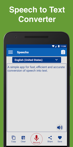 Speecho - Speech to Text Converter เป็นแอพฟรีสำหรับการแปลงเสียงทุกภาษาเป็นข้อความ แอป Speech To Text Converter นี้มีประสิทธิภาพในการแปลงเสียงเป็นข้อความพร้อมกับคุณสมบัติที่จำเป็นอื่น ๆ เช่นคัดลอกล้างแบ่งปันพูดหรือบันทึกข้อความที่แปลงแล้ว มีคุณสมบัติเด่นอื่น ๆ และตัวเลือกอื่น ๆ ที่มีอยู่ใน Speecho - Speech to Text Converter คุณสมบัติที่โดดเด่นของ Speecho มีอยู่ด้านล่าง