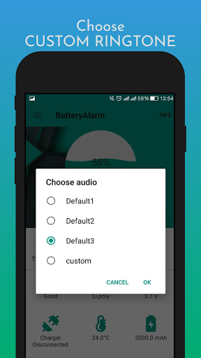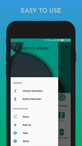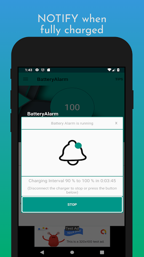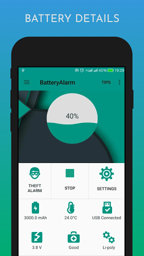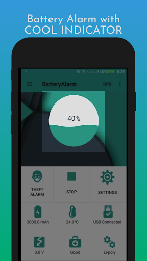 แอปนี้แจ้งให้คุณทราบเมื่อแบตเตอรี่ของคุณถูกชาร์จเต็ม นอกจากนี้คุณยังสามารถเลือกระดับแบตเตอรี่และการปรับแต่งจำนวนมาก