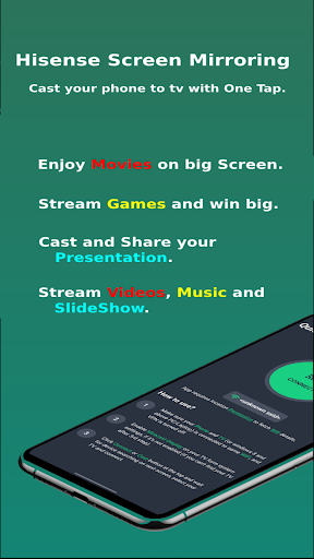 Mirroring หน้าจอ Hisense เป็นแอพที่ช่วยให้คุณสามารถสะท้อนสมาร์ทโฟนของคุณไปยัง Hisense Smart TV ของคุณหรืออุปกรณ์หรือพีซีใด ๆ บนเครือข่ายเดียวกันผ่านเครื่องเล่นสื่อเว็บเบราว์เซอร์, Chromecast และอุปกรณ์ UPNP / DLNA (สมาร์ททีวีหรืออุปกรณ์อื่น ๆ ที่เข้ากันได้)ด้วยแอพ Mirroring (CastTo) หน้าจอนี้คุณสามารถเข้าถึงเกมรูปภาพวิดีโอและแอพอื่น ๆ ได้ทั้งหมดบนหน้าจอขนาดใหญ่