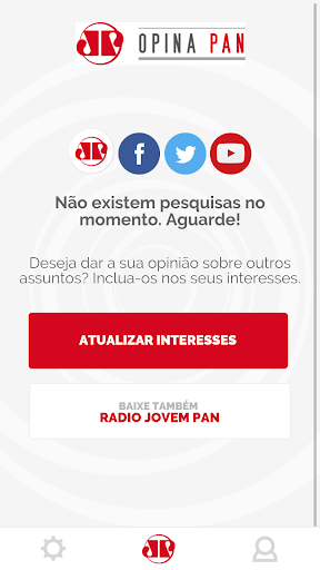 Aqui você pode escolher seus assuntos de interesse e sua resposta é simples e rápida! Através do aplicativo Opina Pan você participa ativamente de assuntos de interesse da sociedade e do desenvolvimento da Rádio Jovem Pan voltado para o ouvinte e muito mais!