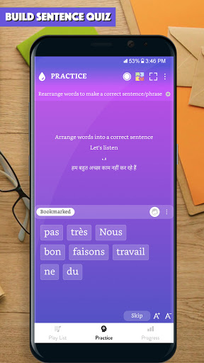 The learning technique, applied in the application, allows you to quickly learn new French words (up to 100 words per day). You can memorize all these words using our app.