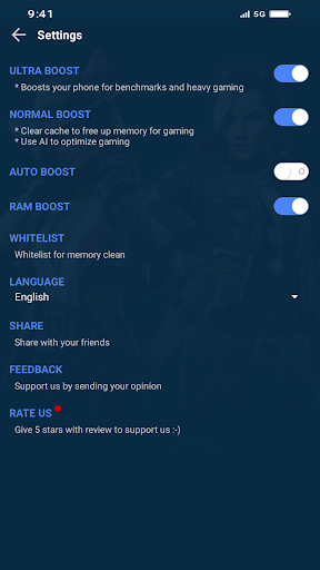 Get rid of bug and lag with one touch (Stops services running in the background, freeing RAM - it can increase the speed of your device. It can provide a better gaming experience...)