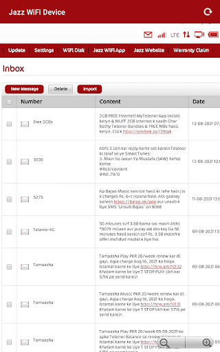 ตั้งค่า WiFi SSID และรหัสผ่าน - สลับระหว่างโหมด 2G, 3G และ 4G / LTE