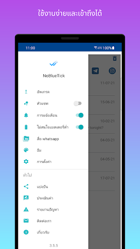 🔥เปิดใช้งานหรือปิดการใช้งาน NoBluetick สำหรับแอปแชทที่แตกต่างกันเช่น WhatsApp, Viber หรือ Messenger และมองไม่เห็นสำหรับการแชทที่เลือกเท่านั้น