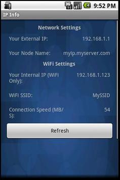 IP Info will show you the network information for your Android device. See the IP Address of your device as seen by web servers. WiFi SSID and internal IP address, DNS and gateway is shown when connected. You can cut and paste the data in other applications. Useful for secure access to servers from your Android device!