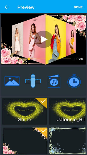 Photo video:slideshow maker is the app with all-in-one video editor as: Music, Text, Themes, Effects, Frames. Everything you need to create an awesome video from photos. App needs simple steps to create video. You just need to select your favorite photos, add backgrounds, add music, 2D or 3D transition effects on video, slideshow video will be created. Use this one of the best movie maker for making slideshow from photos with music from your music library.