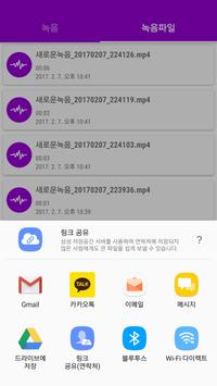 Recorded files can also be shared with KakaoTalk, Gmail, Facebook, and so on.
