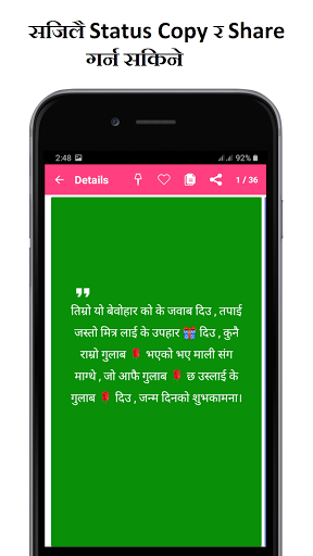 คุณลักษณะการคัดลอกจะได้รับในแอปพลิเคชันสถานะ Nepali เพื่อให้คุณสามารถคัดลอกและวางสถานะ Nepali ให้กับบุคคลที่คุณกำลังสนทนากับ