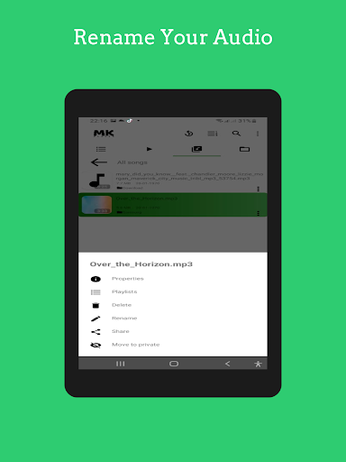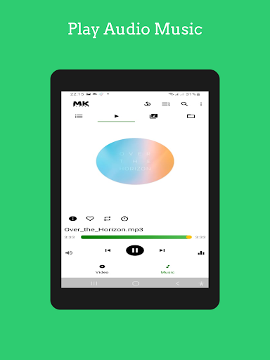 Mk Player is built with the latest technology, Play your 4K,Full Hd,And 1080p play you Audio Music too from the same app.No need of installing two difrent apps one for video playing and another for audio